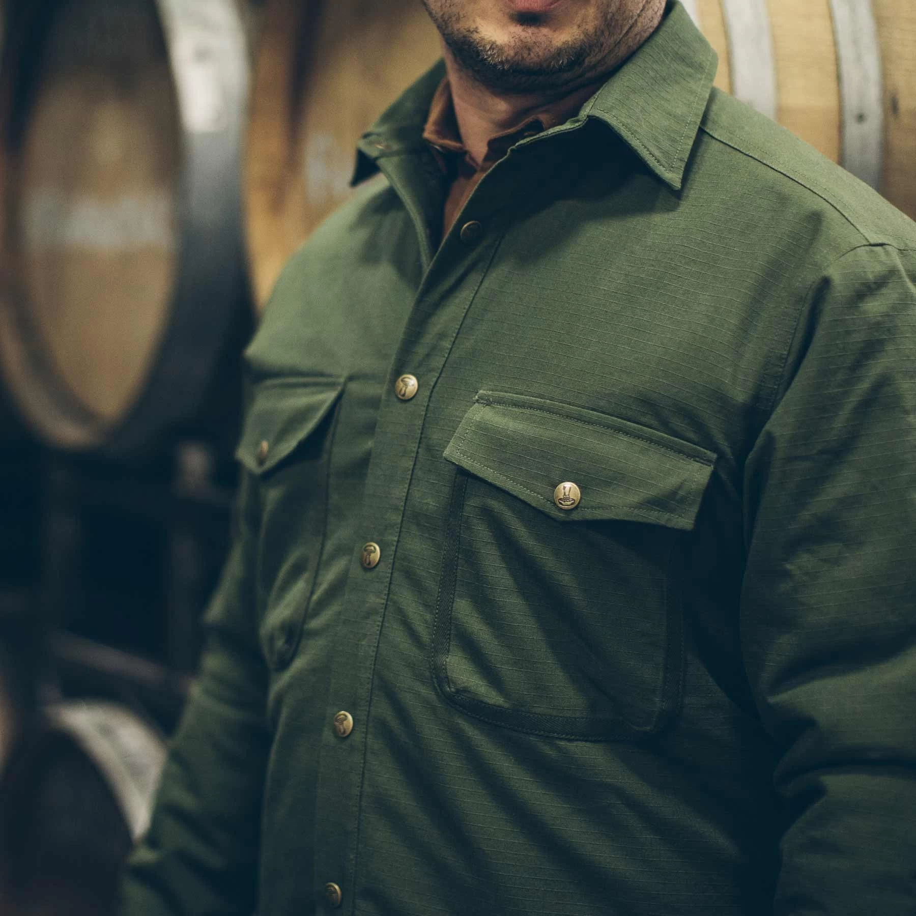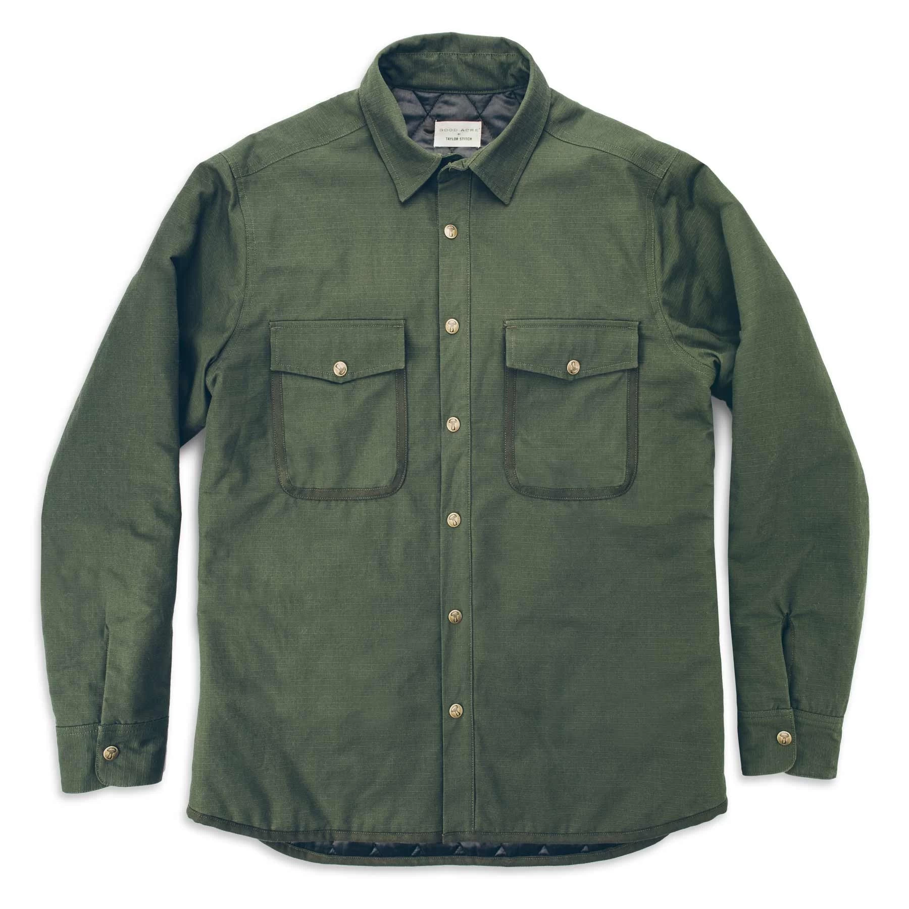 - Custom dyed twill tape binding featured on pocket, arm placket, and bottom hem.