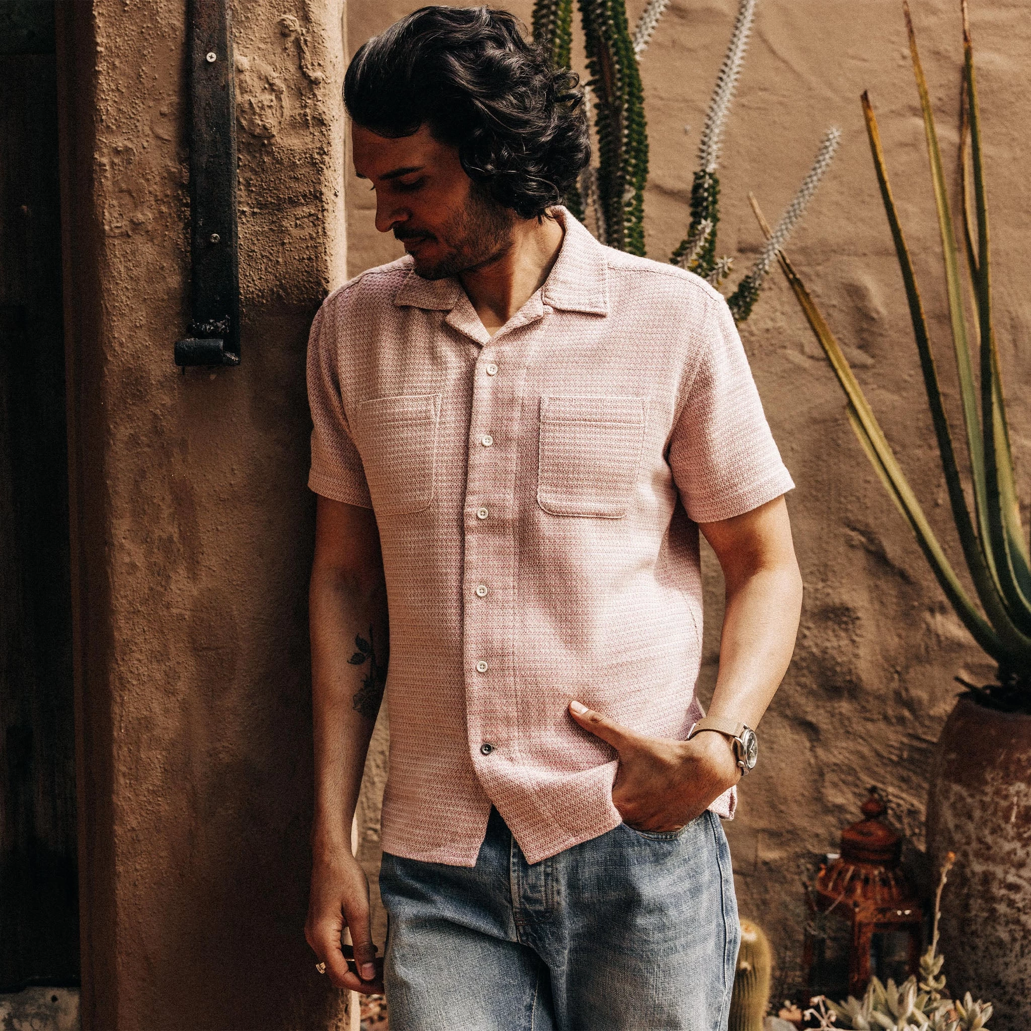 - Camp collar (no collar stand) meant to be worn open.