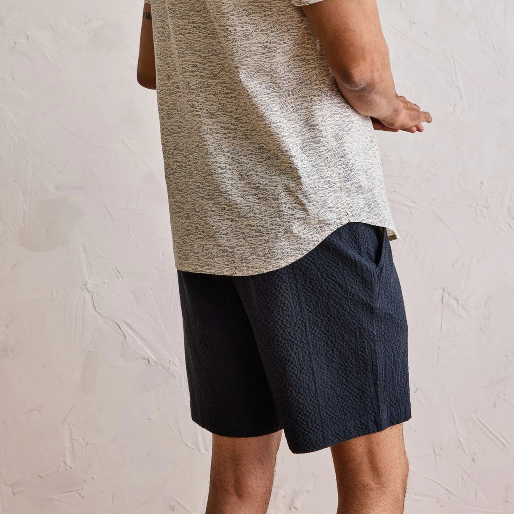 The Easy Short in Heather Navy Seersucker from Taylor Stitch