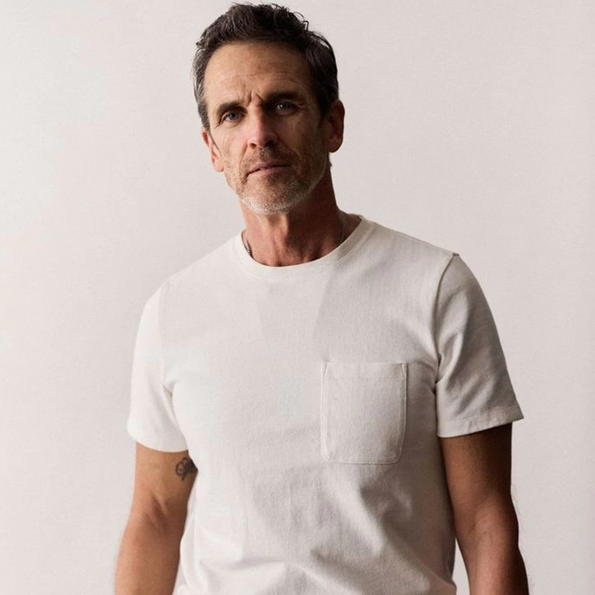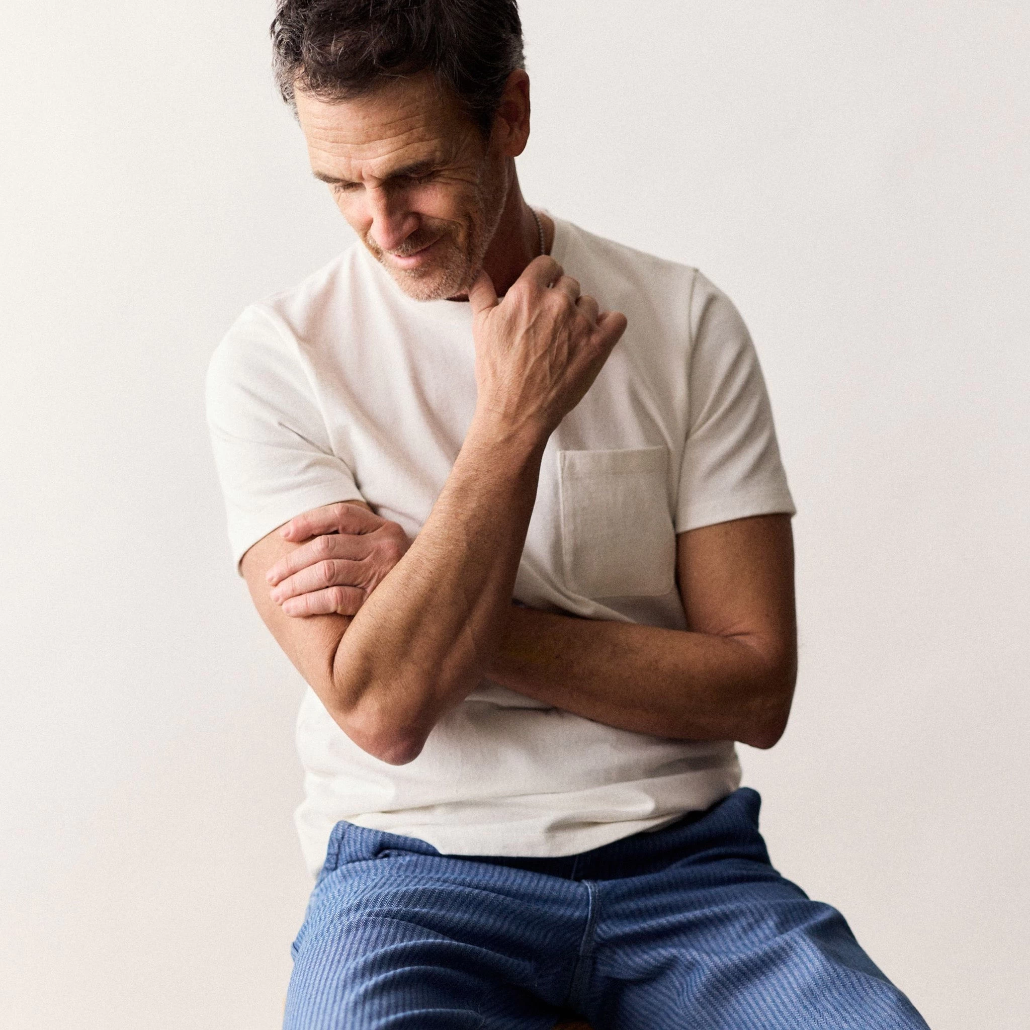 A heavy-weight tee for when the temperature drops but you’re not quite ready for long sleeves. Constructed with 8-oz. cotton in natural. Shop Essentials.