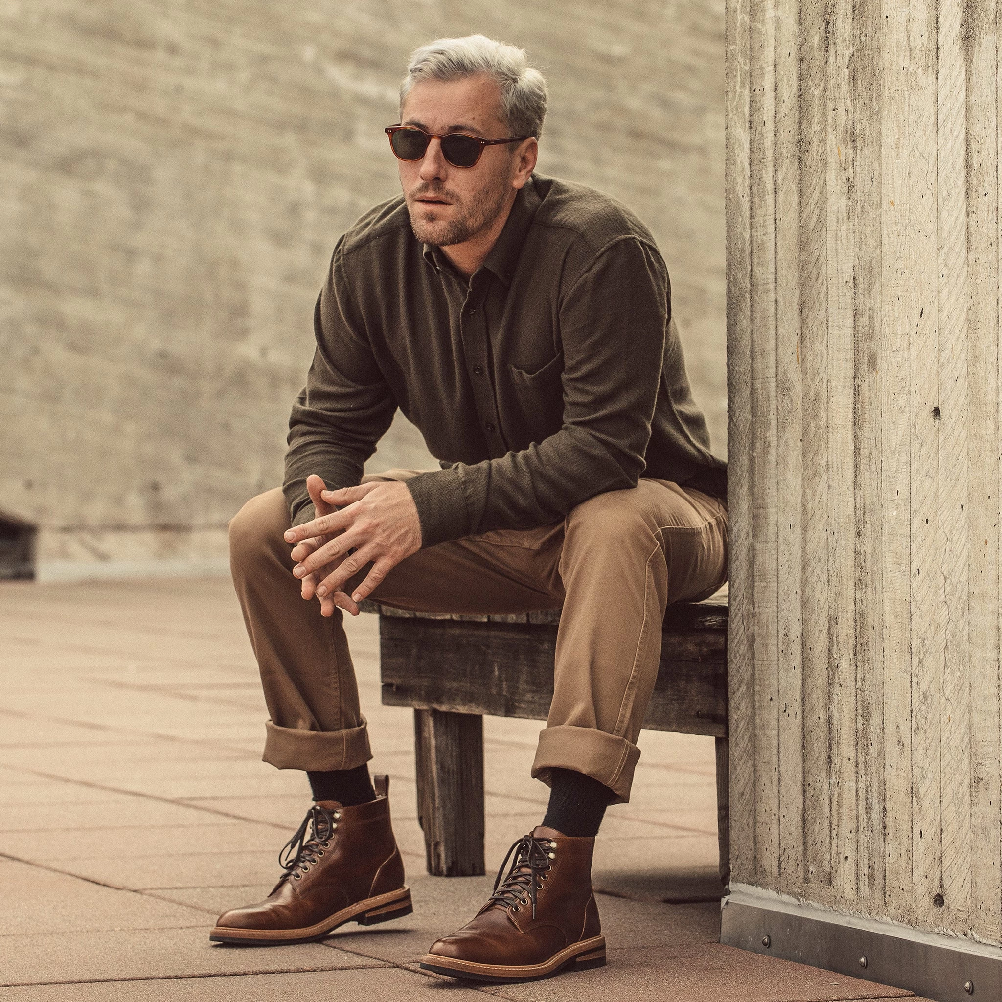 The Jack in Olive Brushed Organic Cotton from Taylor Stitch.