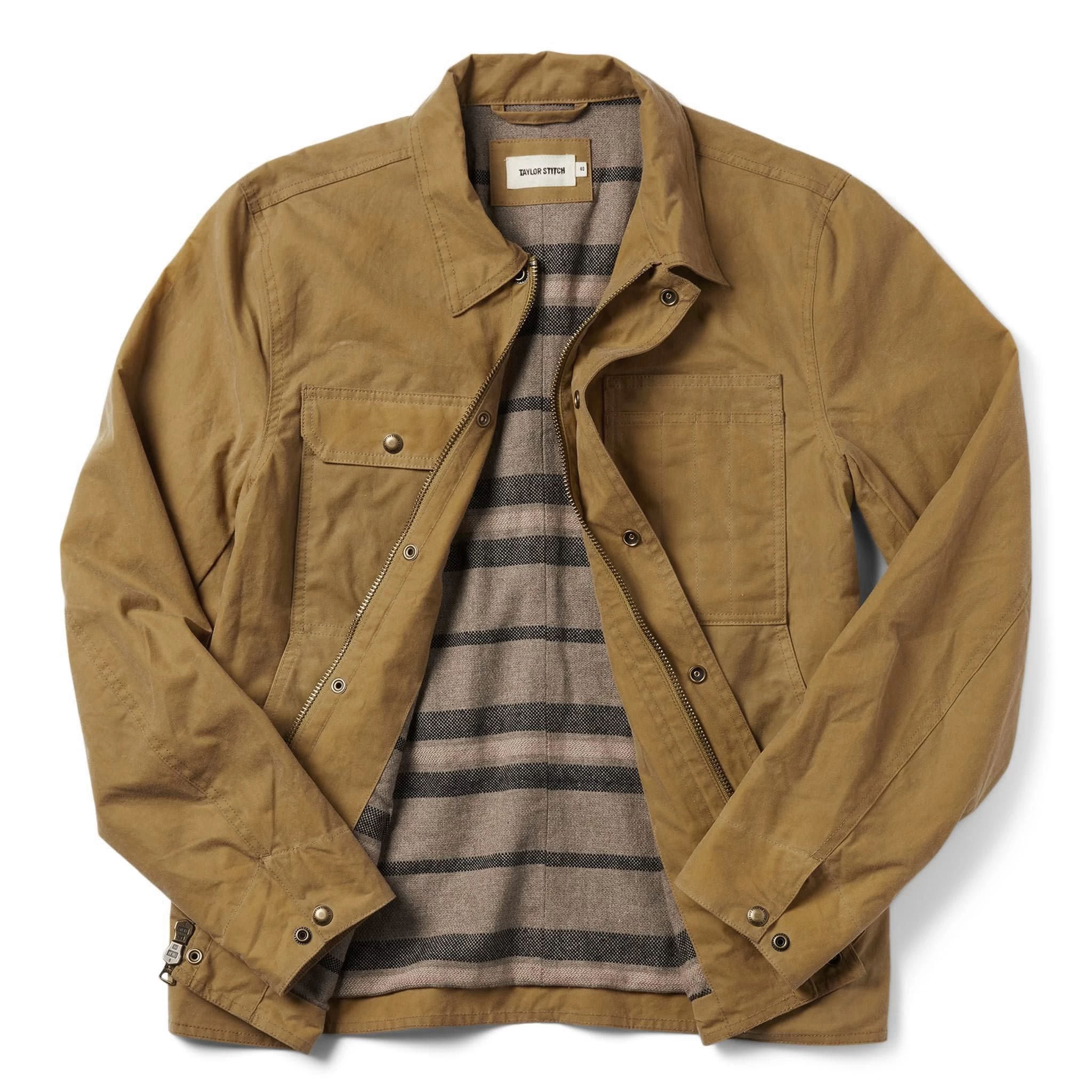 The Lined Longshore Jacket in Harvest Tan Waxed Canvas from Taylor Stitch