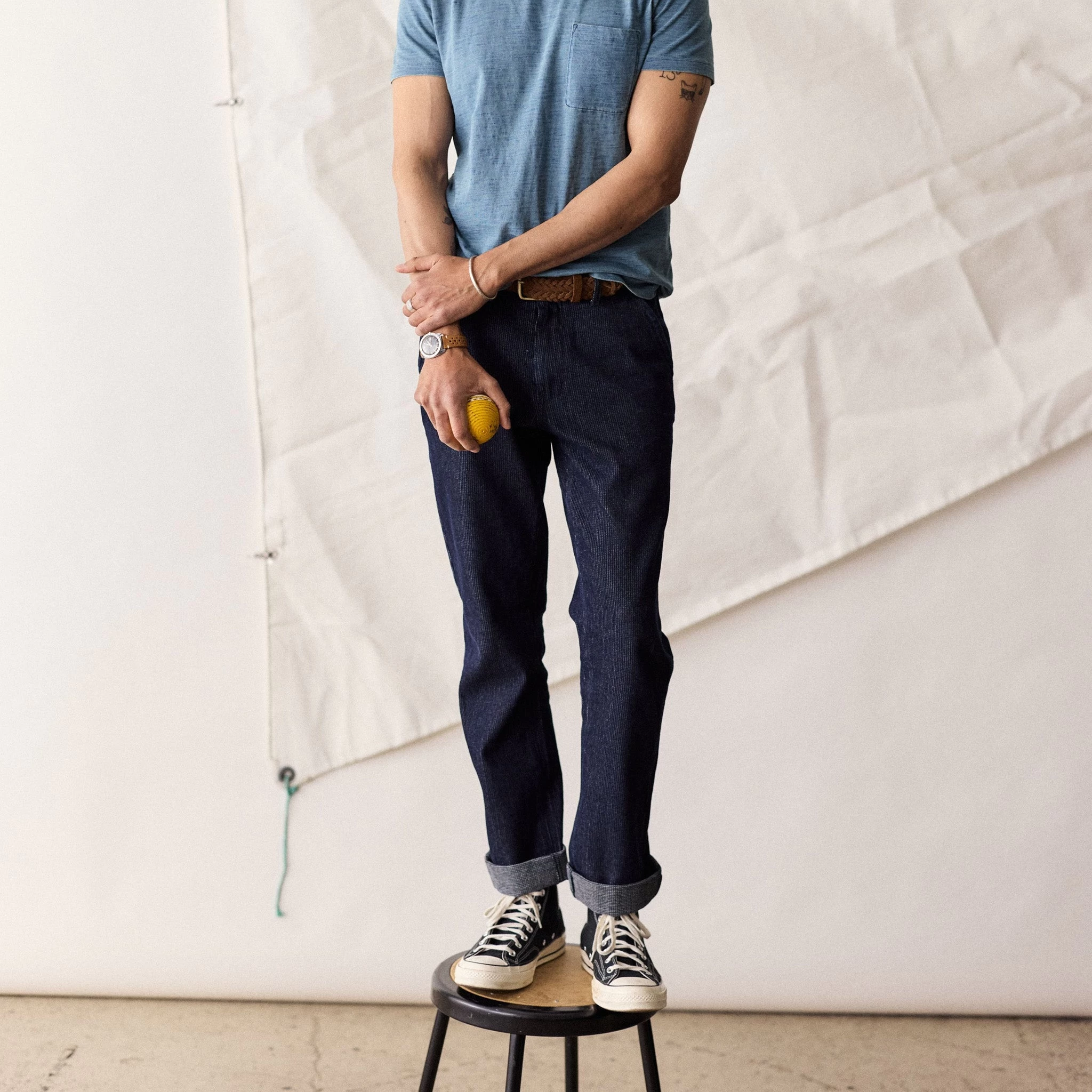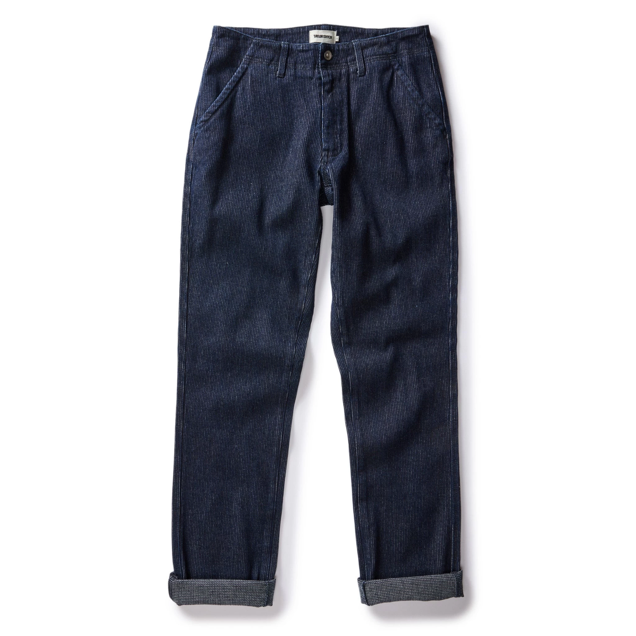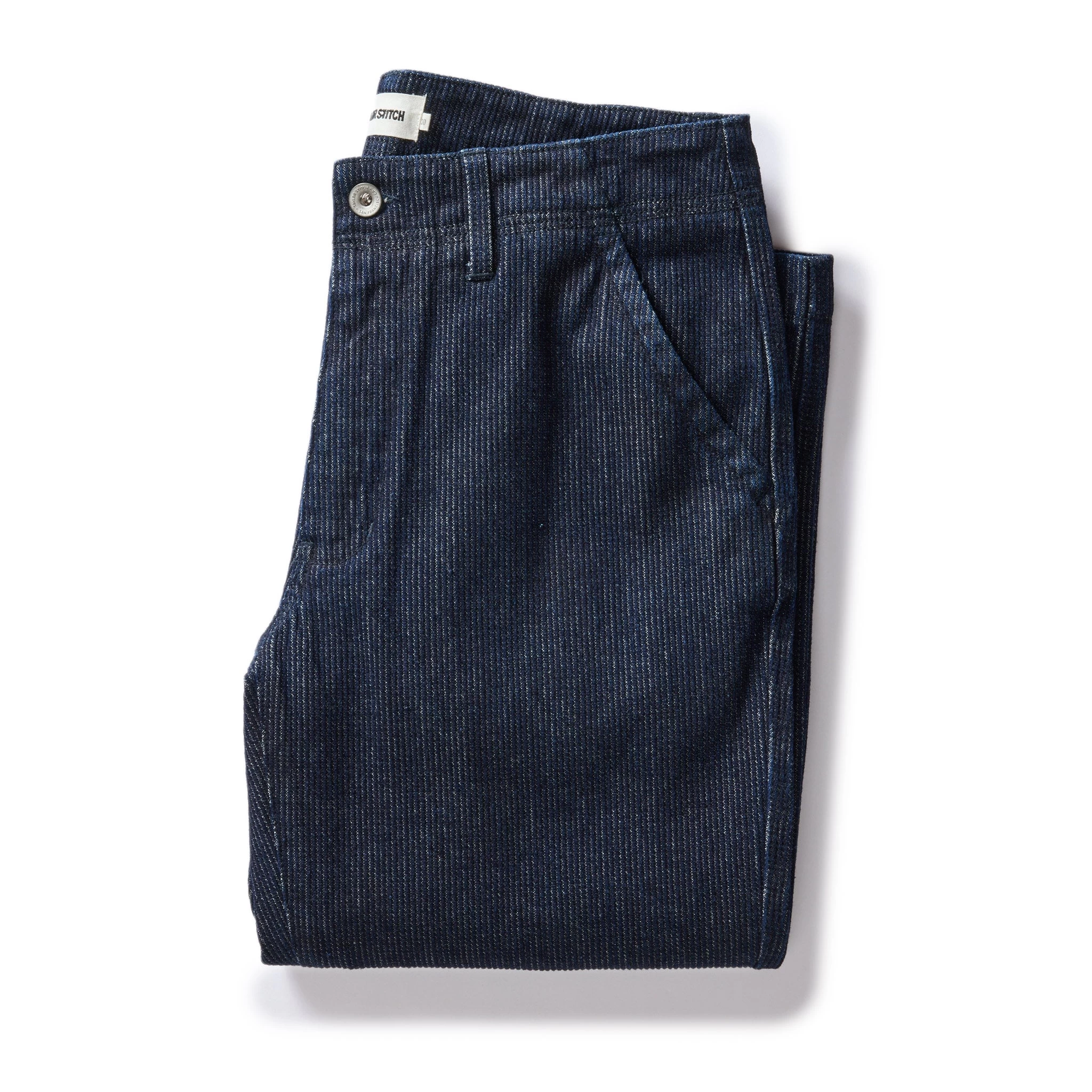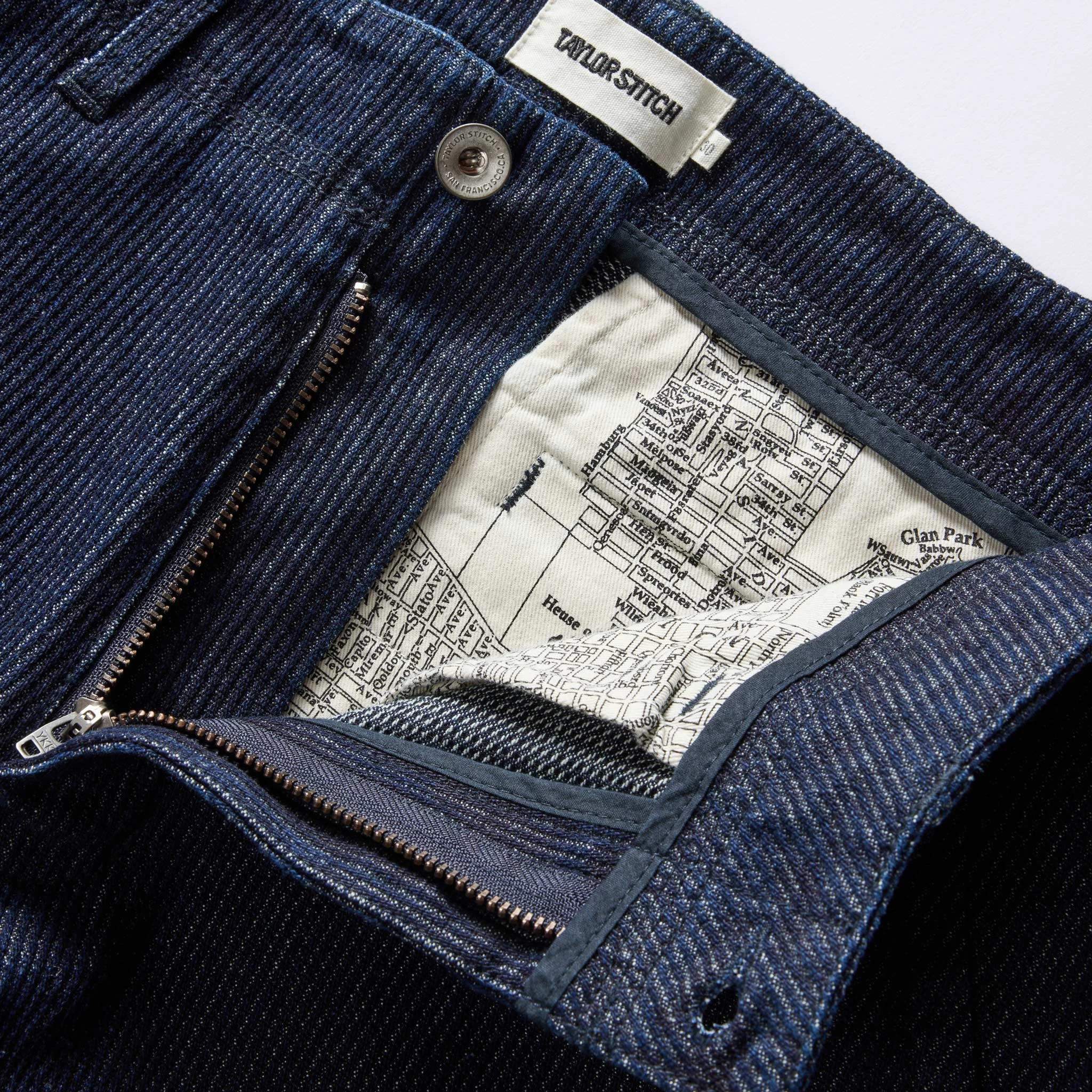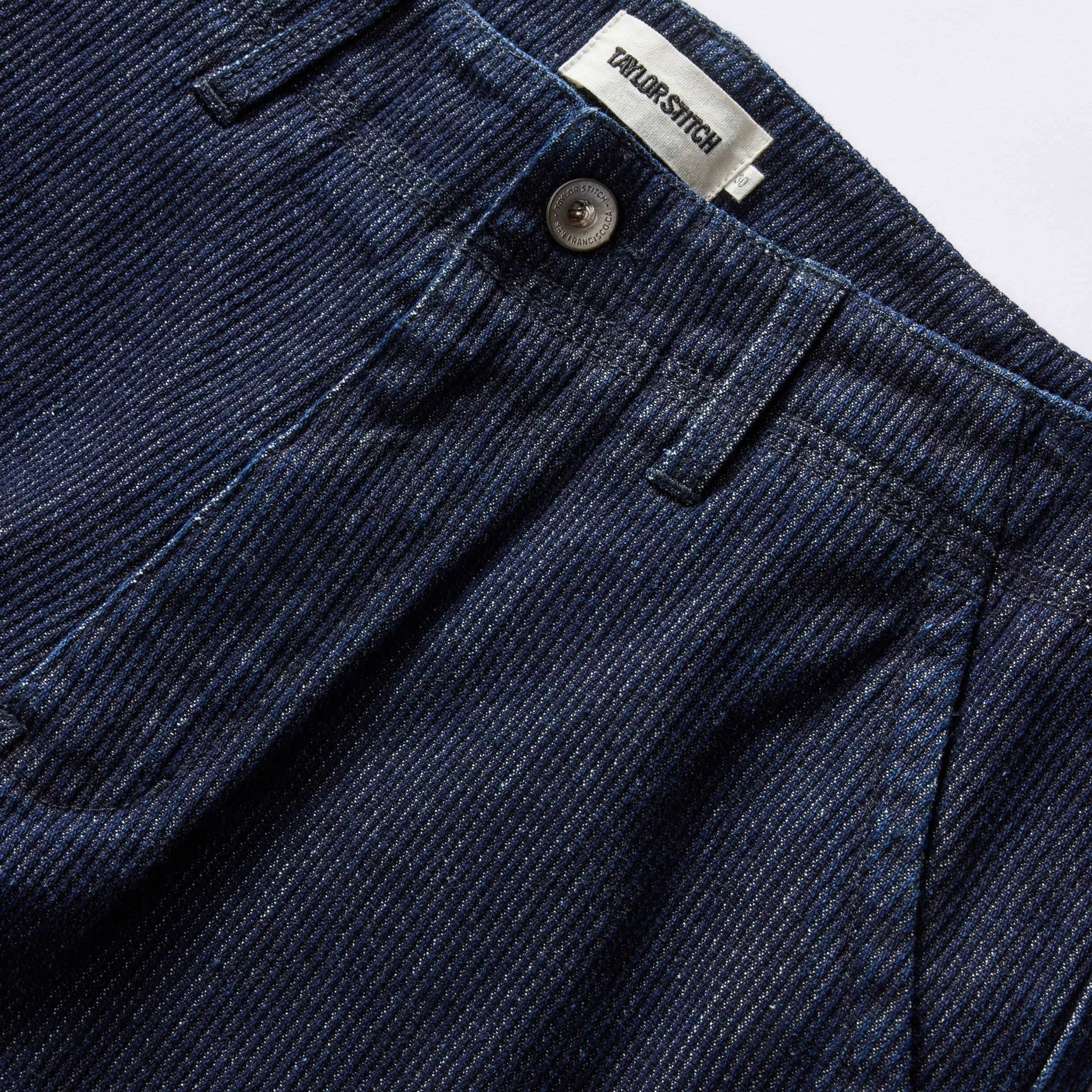 The Morse Pant in Rinsed Indigo Stripe from Taylor Stitch