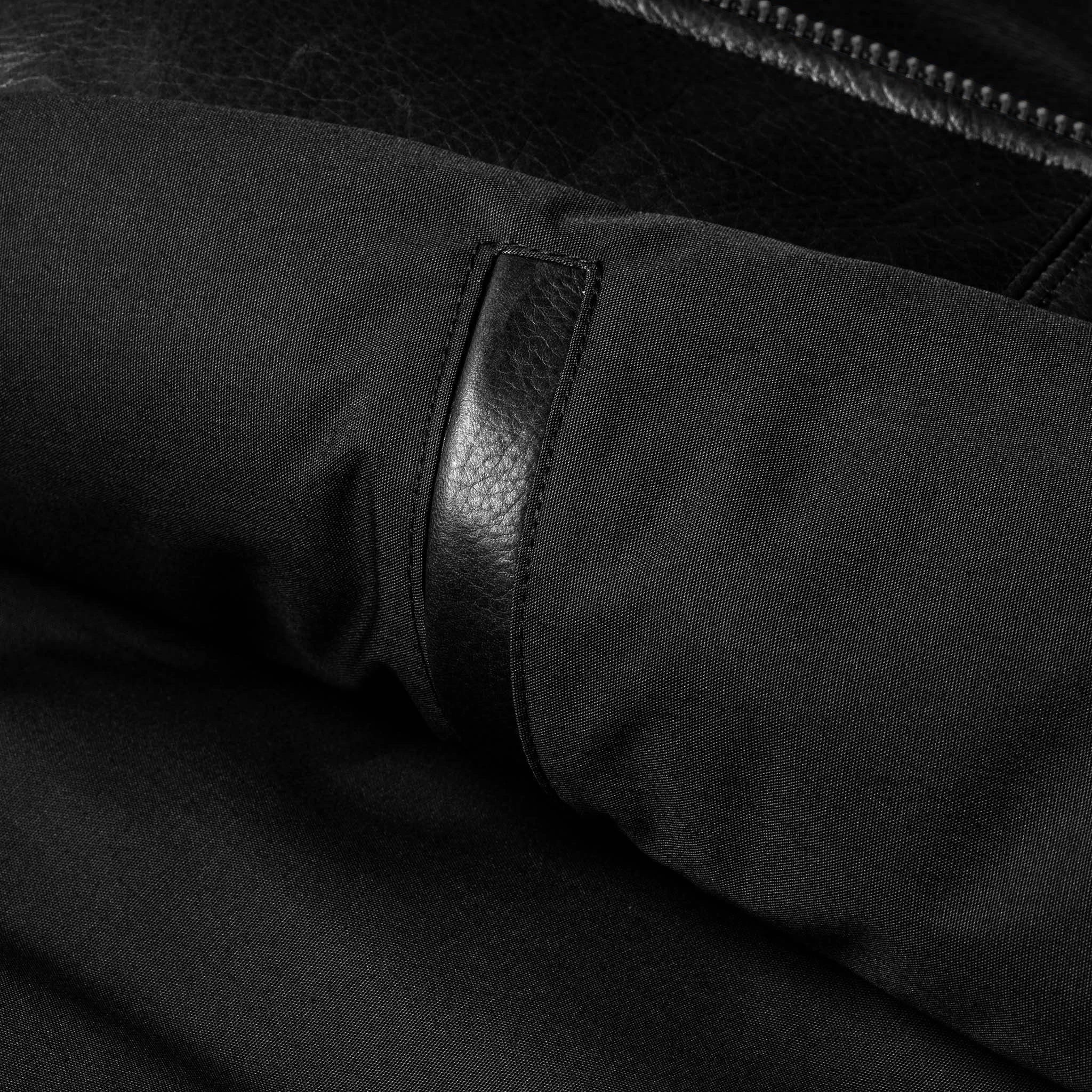 - Zig-zag stitch reinforced collar and inside leather wind flap.