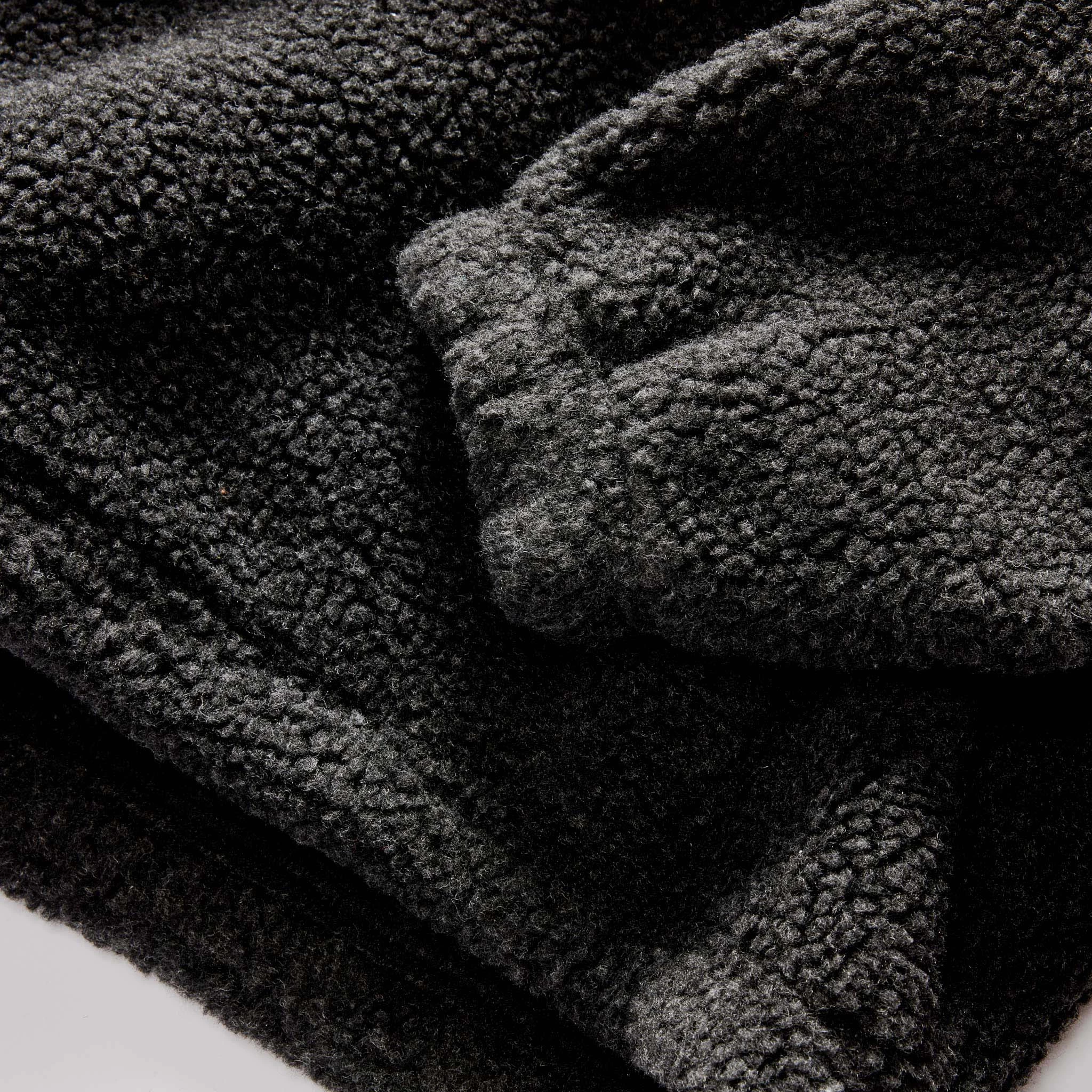- 15-oz. 100% recycled polyester sherpa with bonded fleece interior.