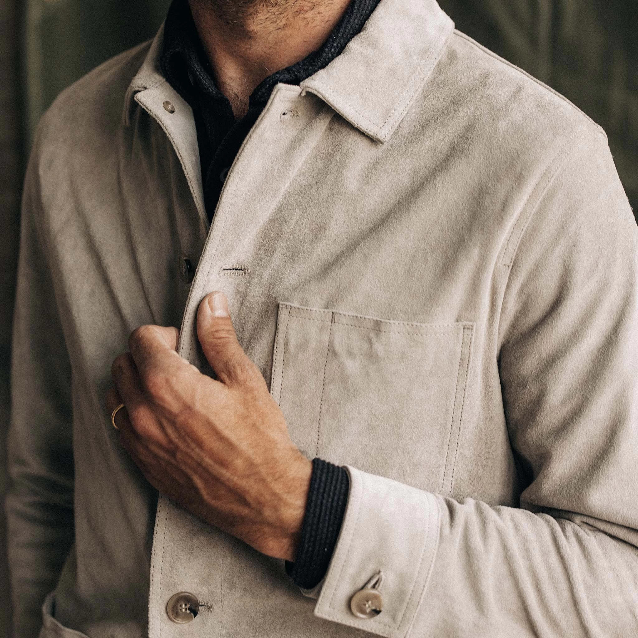 The Ojai Jacket in Oyster Suede from Taylor Stitch