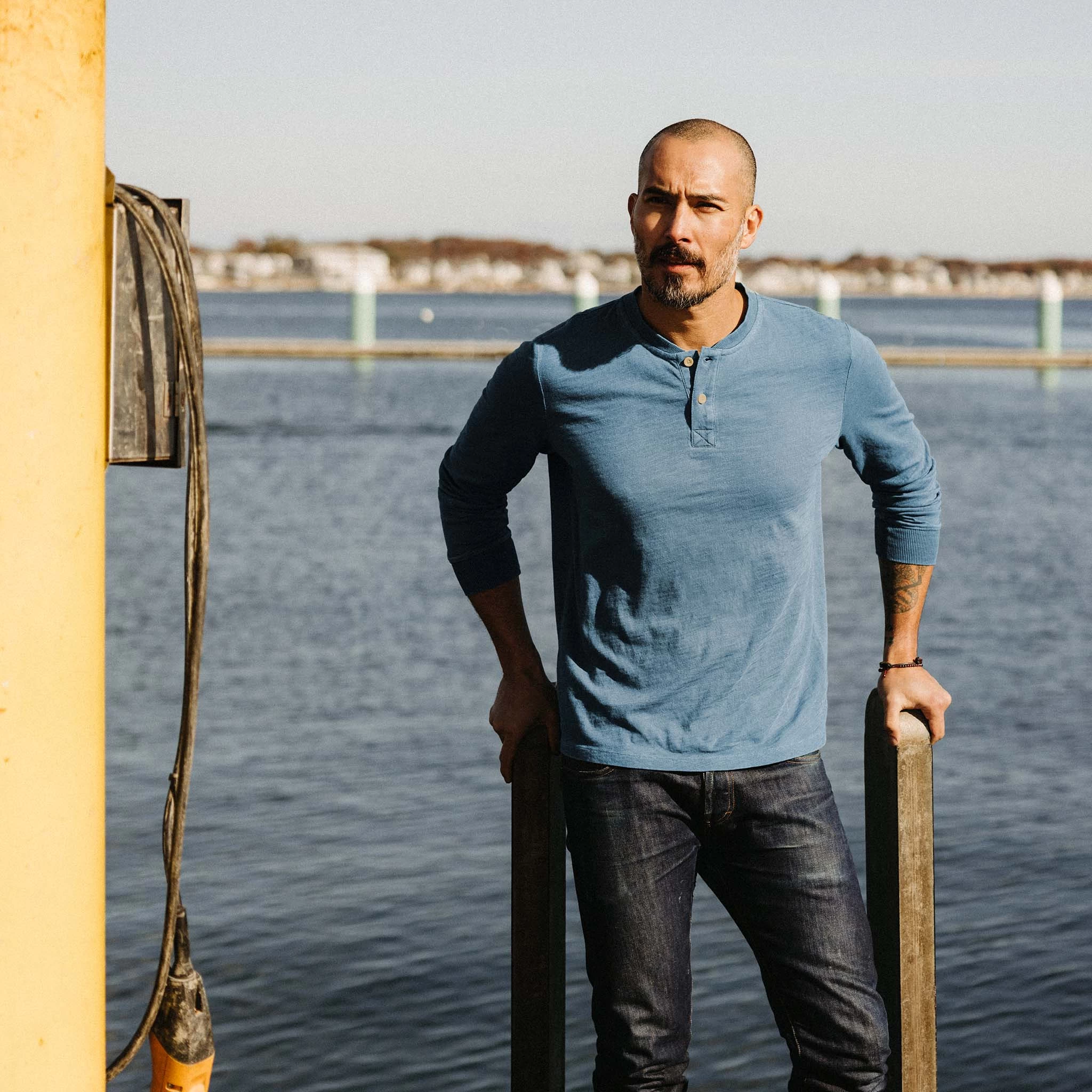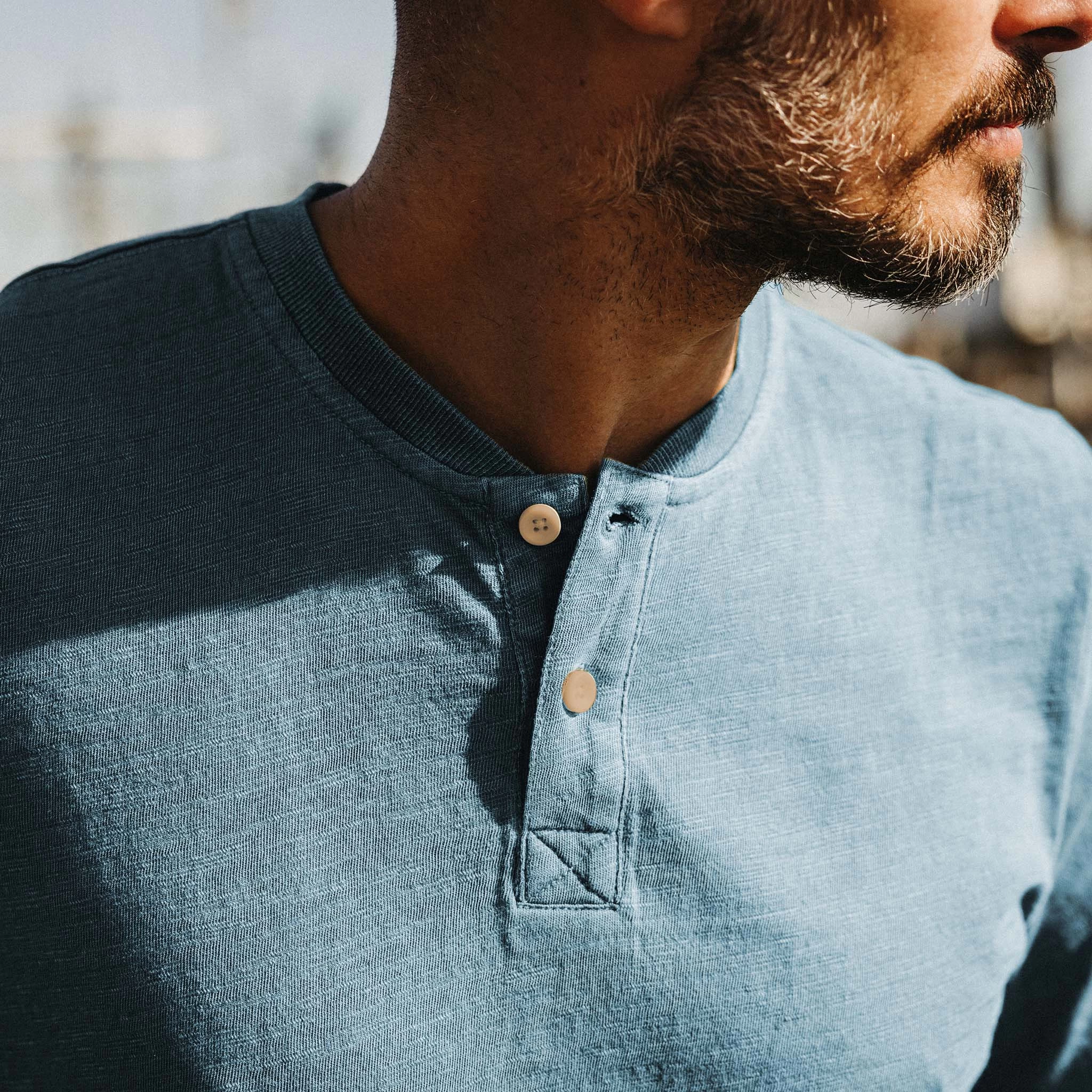 The Organic Cotton Henley in Washed Indigo from Taylor Stitch