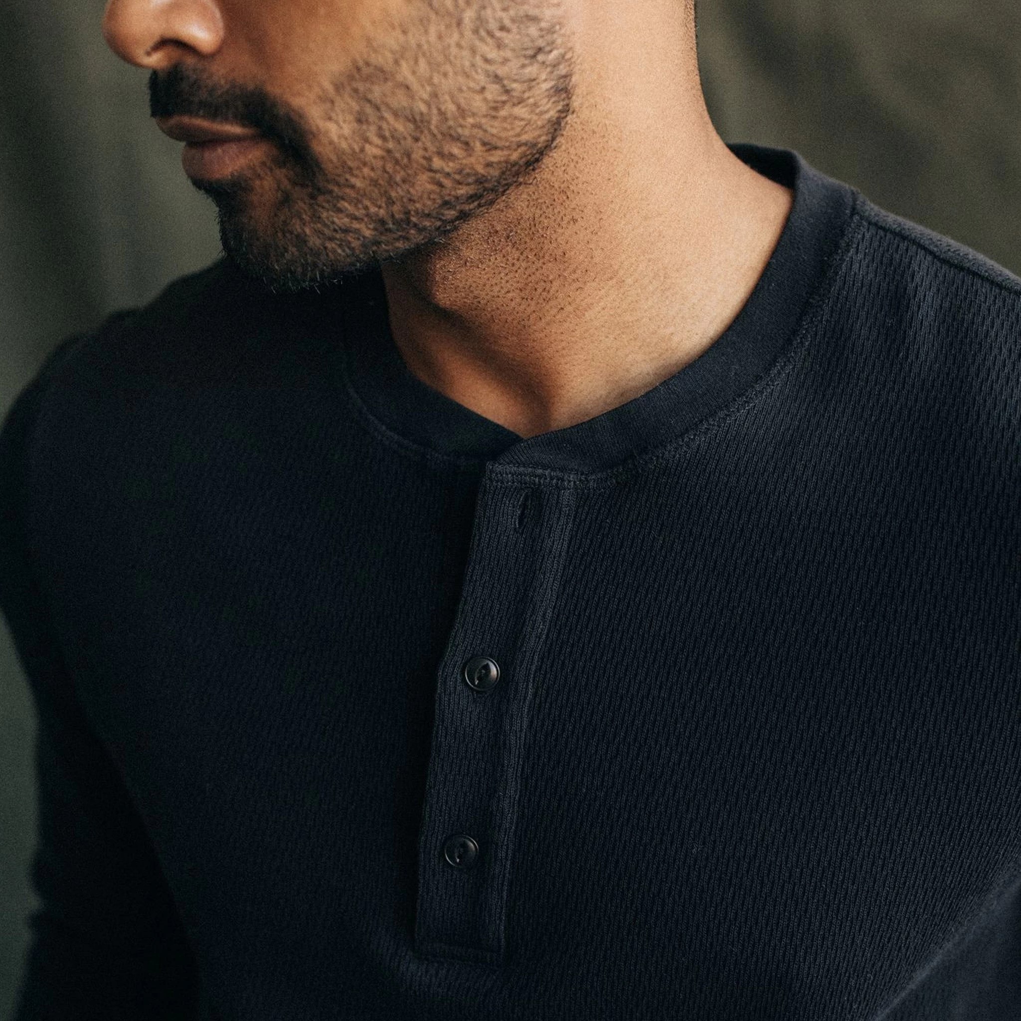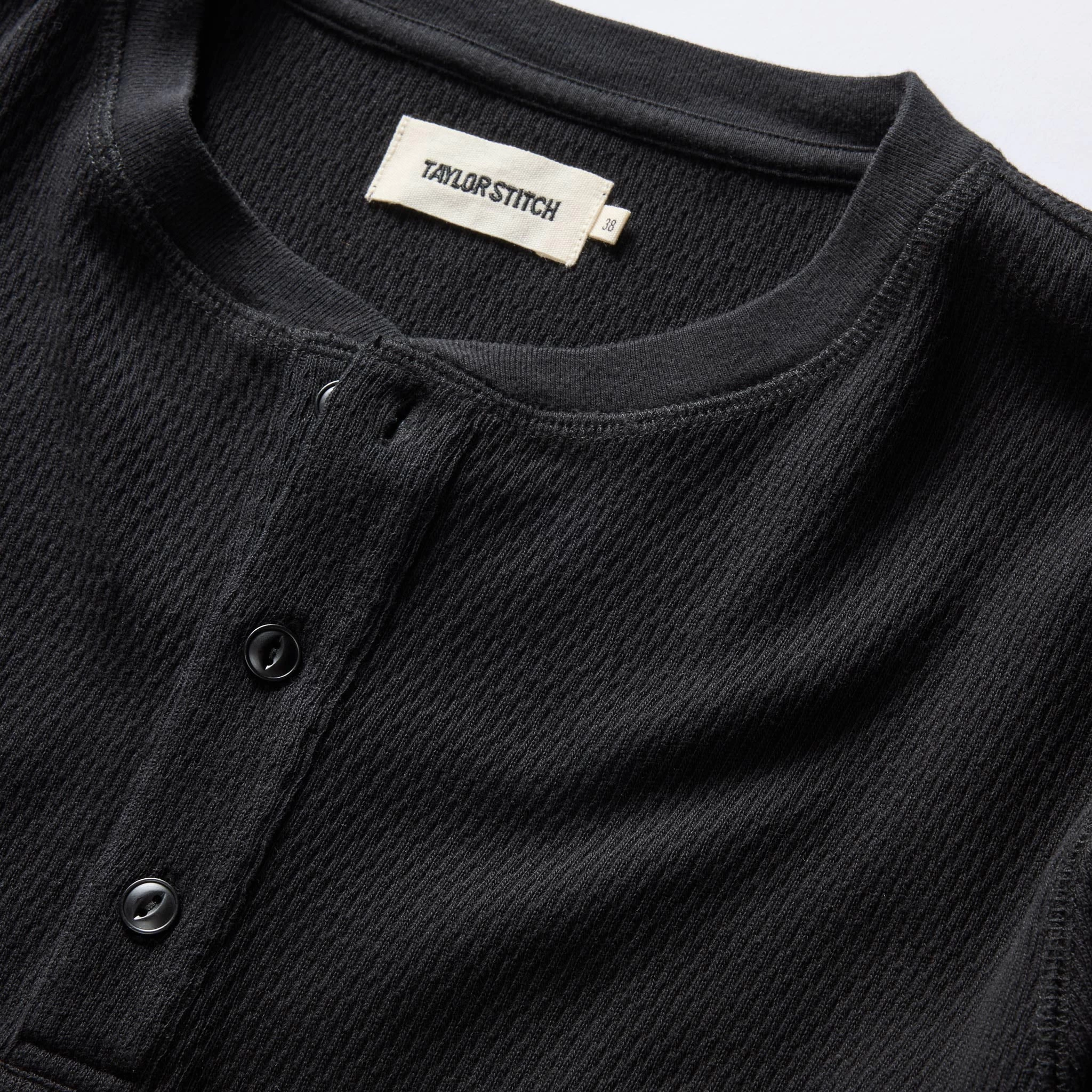 The Organic Cotton Waffle Henley in Coal from Taylor Stitch