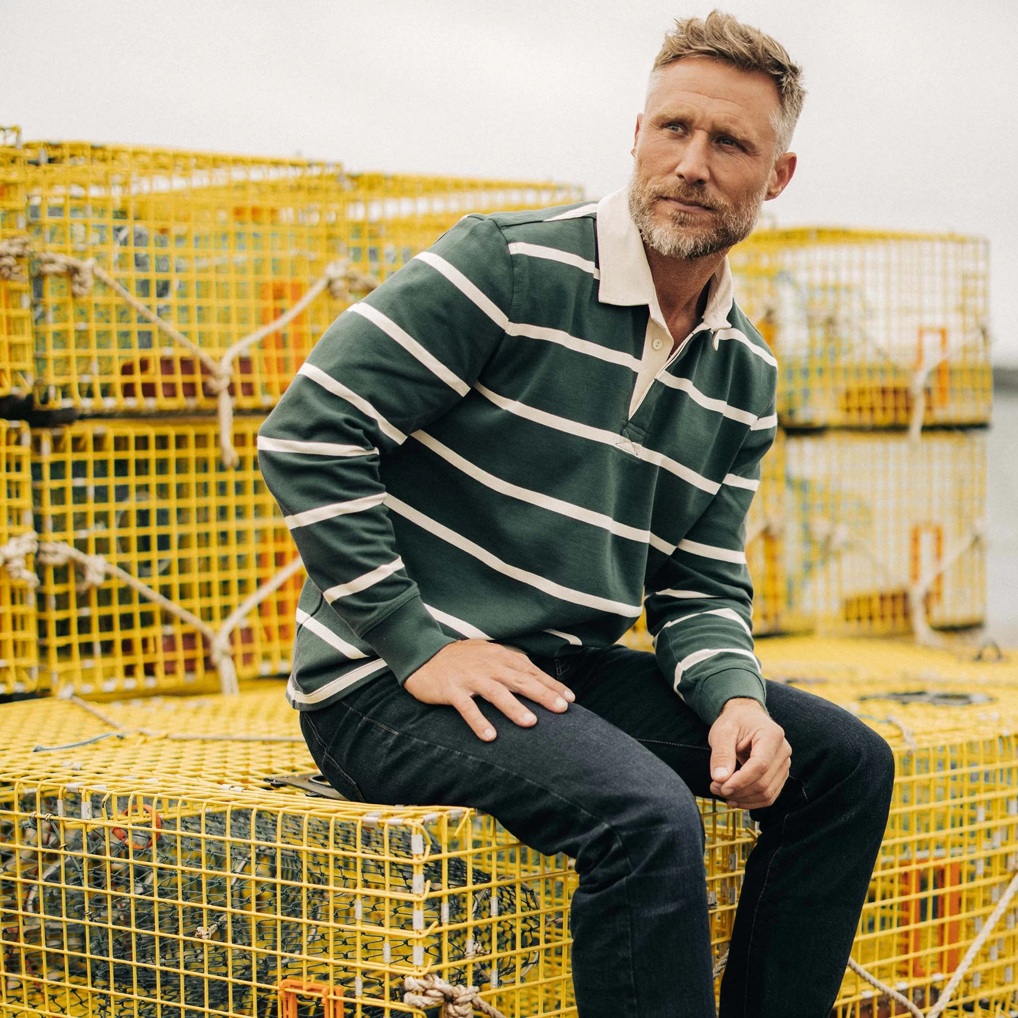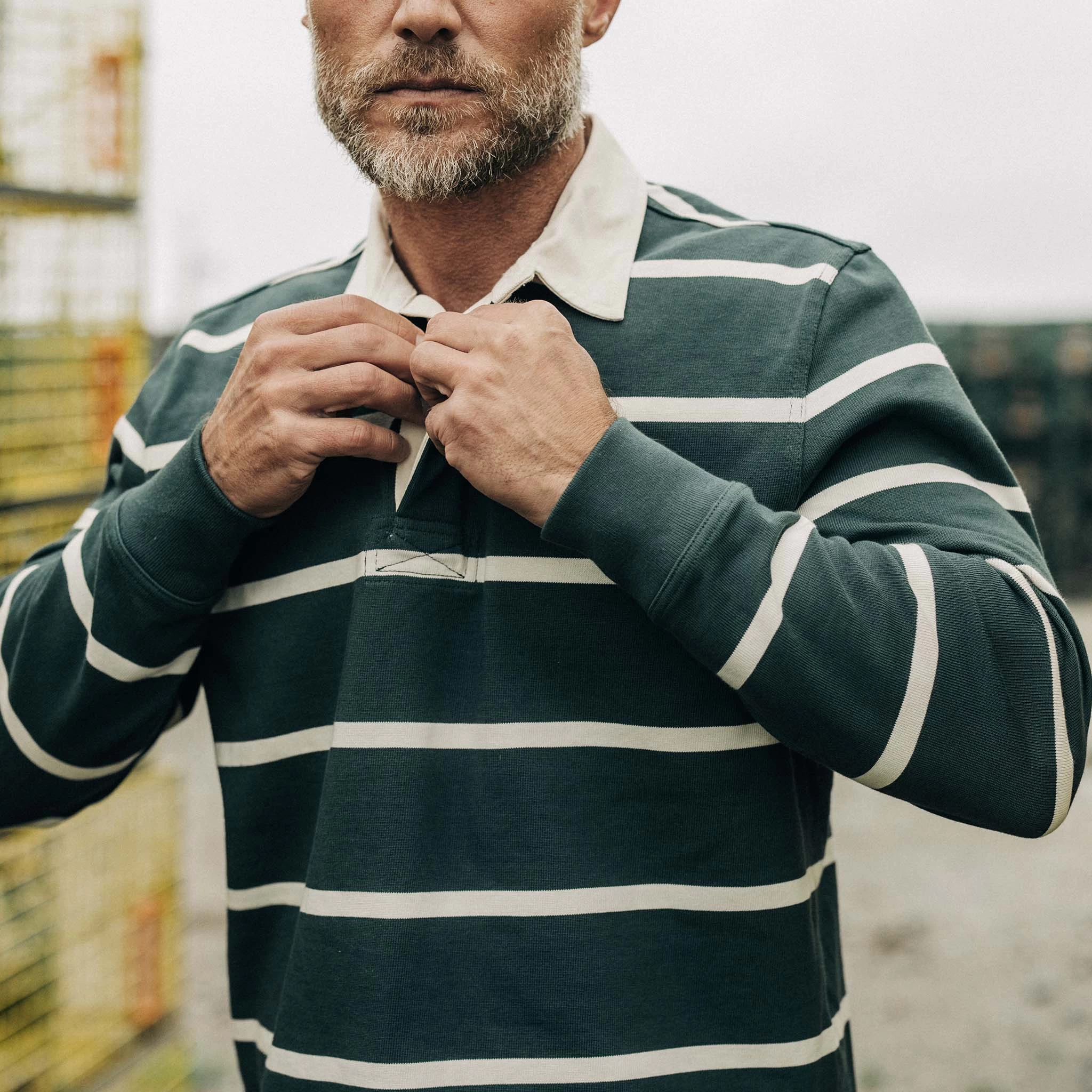 The Rugby in Dark Forest Stripe from Taylor Stitch