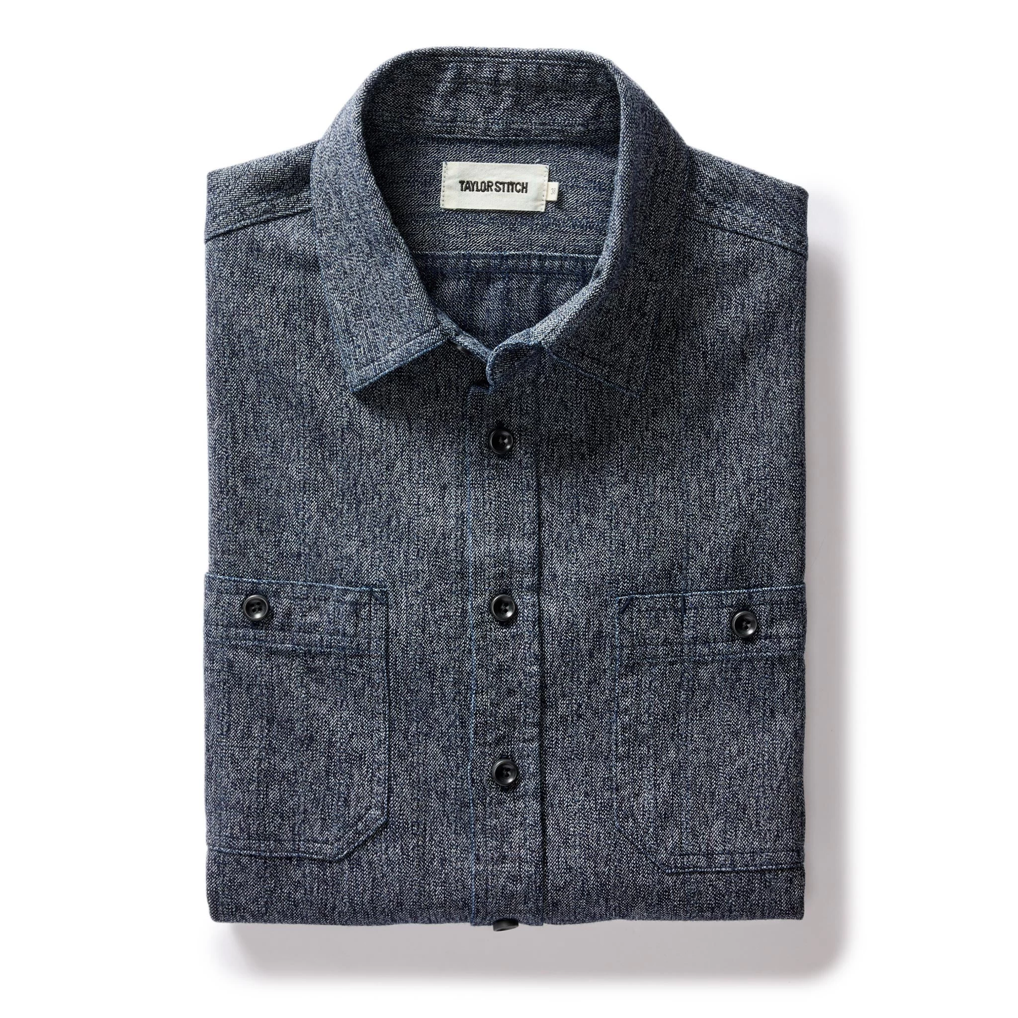 The Utility Shirt in Rinsed Indigo Herringbone from Taylor Stitch