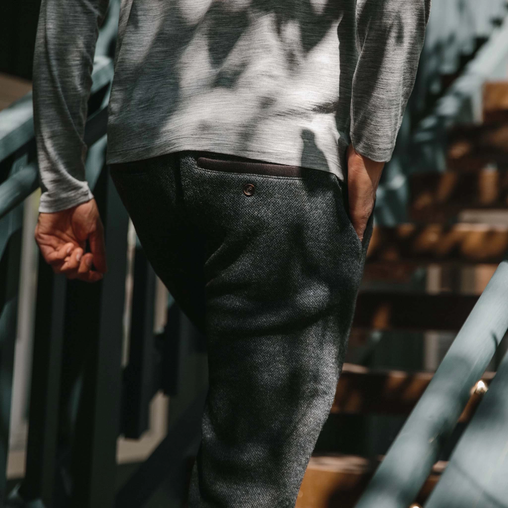 The Weekend Pant in Charcoal Herringbone Wool from Taylor Stitch