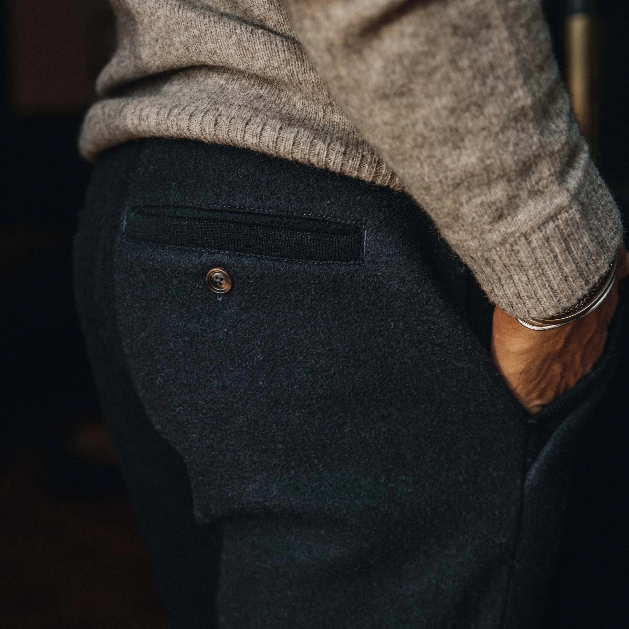 The Weekend Pant in Navy Boiled Wool from Taylor Stitch